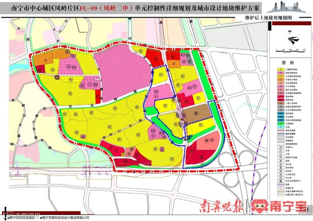 南宁市自然资源局发布南宁市中心城区凤岭片区 FL-09(凤岭二中)单元控制性详细规划及城市设计局部地块维护方案。根据规划,该片区功能定位为营造以综合居住功能为主,居住配套设施完善、环境优良的综合居住区。