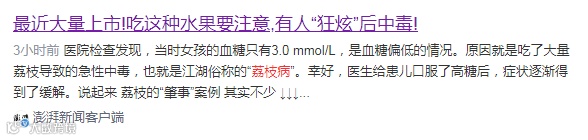 李女士在与朋友分享自己的遭遇时,才发现和她有相同感觉的人还不少,“为啥荔枝吃多了会有头晕恶心的感觉呢,原来这是‘荔枝病’呀?”