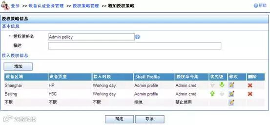 基于场景的授权策略,强化设备管理用户授权管理支持按场景分配授权策略,场景是设备位置区域、设备类型和接入时段的组合,可定义在不同场景下设备管理用户所使用的Shell Profile和操作命令集。