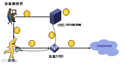 5) 访客身份验证成功后,根据访客接入控制策略控制访问Internet及特定网络资源;;