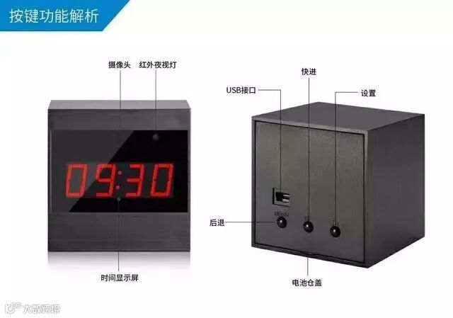 像这种电子钟摆件类的产品,主要判断的方法就是查看正面玻璃处是否有明显的色差。然后看下背面是否有USB口,内存卡槽等非正常用途的装置和按键。