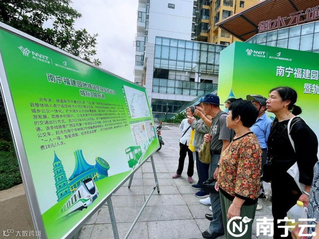 市民在轨道交通福建园公交首末站了解南宁福建园地铁站至扶绥龙谷湾城际1路公交运营路线。记者 黄思宁 摄