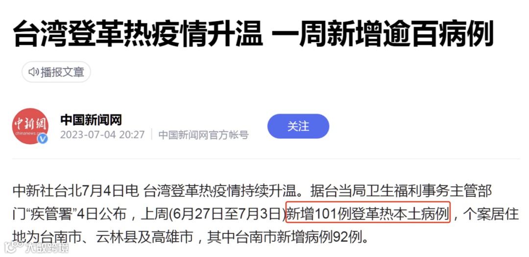 典型登革热致死率低于1%,但如果不及时治疗,拖成重症,致死率超过20%。