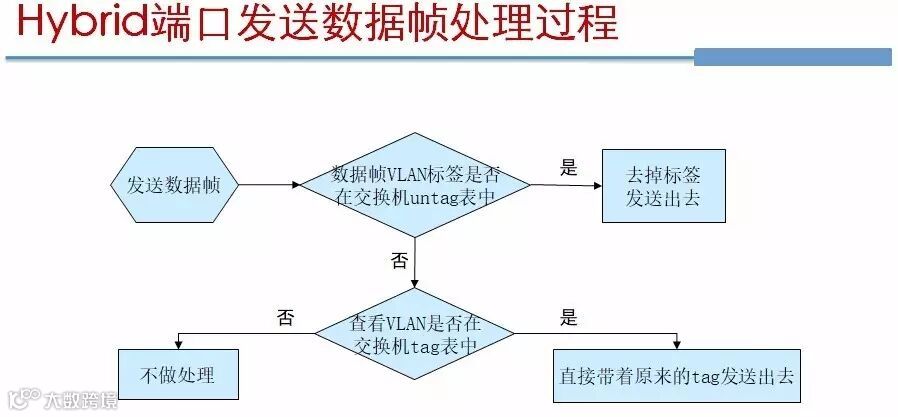 Hybrid端口:为H3C设备私有端口,和Trunk端口的区别是,Trunk端口只允许一个vlan不带标签通过,而Hybrid端口允许多个vlan不带标签通过。