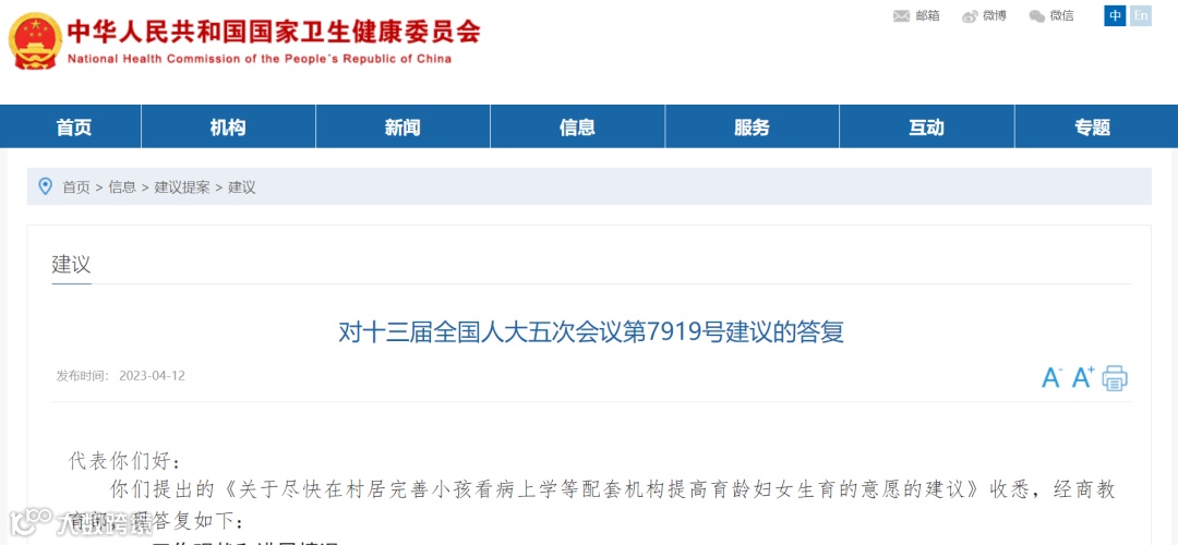 此外,针对尽快在村居完善小孩看病上学等配套机构,提高育龄妇女生育意愿的建议,国家卫健委答复称,近年来,国家卫健委不断加强基层医疗卫生服务能力建设。