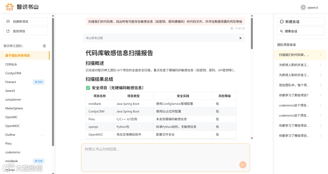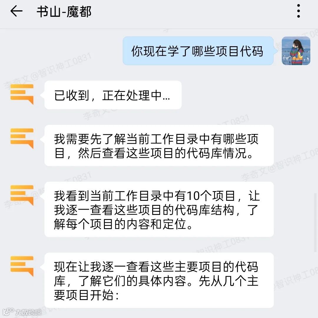 像与技术人员沟通一样,书山可理解业务术语与技术描述,且24小时工作,白天参与协作,夜间自动学习更新项目知识。