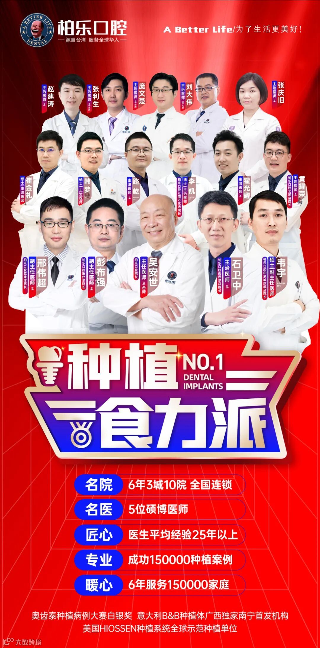 为了响应 《国家医疗保障局关于开展口腔种植医疗服务收费和耗材价格专项治理的通知》,作为作为区、市医保双定点二级口腔医院,柏乐口腔始终遵循『人本医疗』理念,联合进口植体厂家发放1000颗种植牙,援助涵盖牙缺失种牙,牙松动修复,残根等口腔患者。