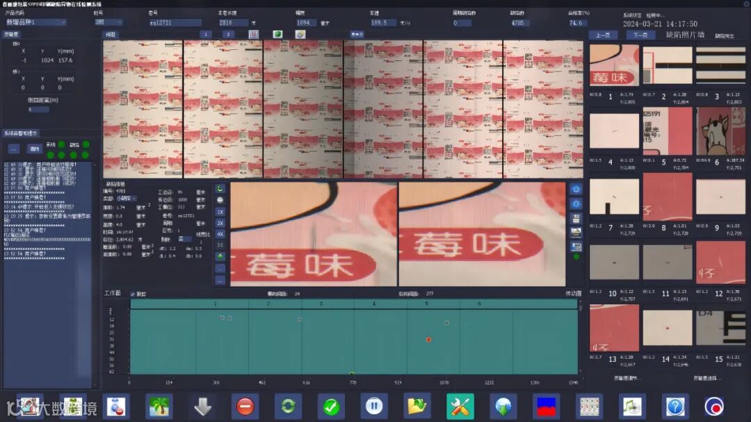 系统可检测印刷过程中套色不准、错位、刮刀线、异物、漏印、溅墨、漏墨、蚊虫、晶点、褶皱、破损、脏点、颜色污染等。