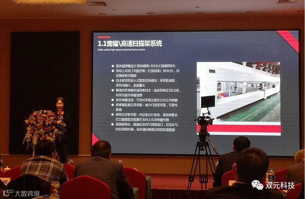在专题演讲部分,双元科技总经理胡美琴女士发表演讲:为造纸智造打造新的数据平台。介绍了适合大型高速纸机的扫描架及横幅控制系统,高速表面缺陷及匀度在线检测系统,构建纸机生产过程的网络化数据平台。