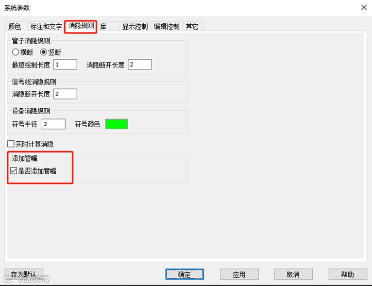 根据自己的项目要求,勾选“是否自动添加管嘴”选项,当用户在设备某