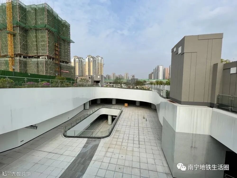 G口也可通向地铁商业街,沿着扶梯往上出站可见,站外广场和居住房皆于建设阶段。