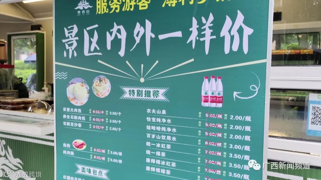在大家固有的印象当中,景区里售卖的商品,价格会比景区外贵一倍。因此不少人感叹:景区风景优美,商品价格也“美丽”那该多好!这个美好的愿望,还真的实现了。南宁青秀山风景区从今天开始,在国家5A级旅游景区中率先开展了饮食商品“景区内外一样价”专项行动。