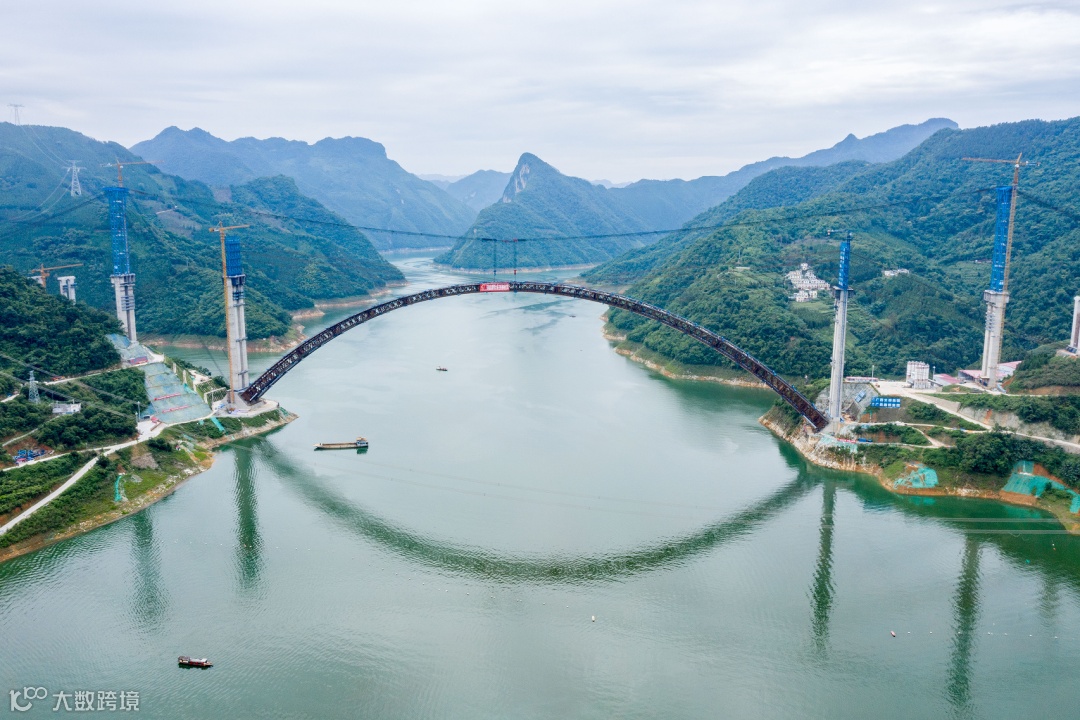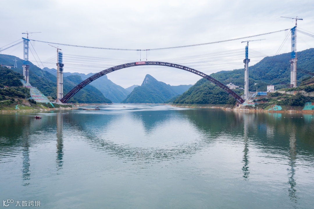 2022年2月27日,大桥顺利完成首节段拱肋吊装,以平均2天吊装一节拱肋的速度推进;4月10日,大桥完成24个拱肋节段吊装,吊装任务过半;6月6日,历经99天,大桥主桥拱桁实现高精度合龙。