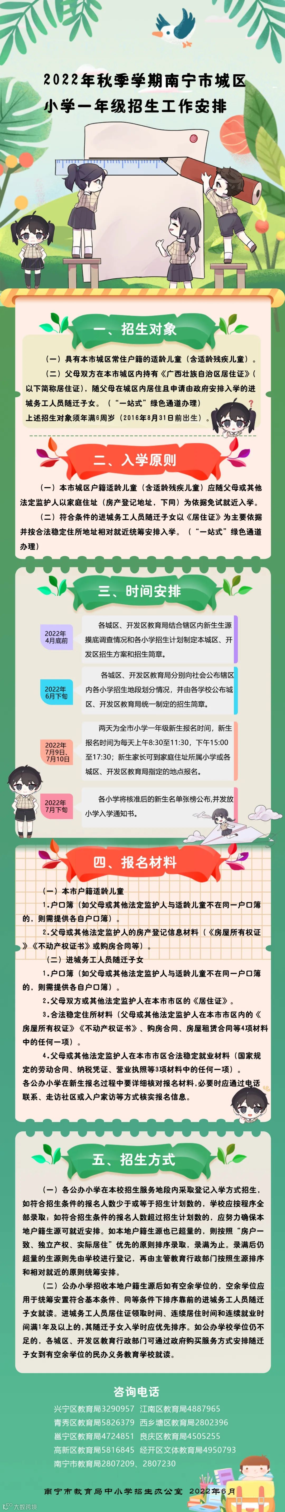 2022年秋季学期南宁市城区小学、初中一年级招生工作安排来了!