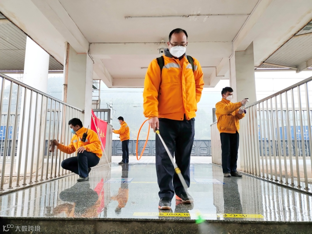 地方防疫部门对售票厅进行全面消杀。农霞梦 摄