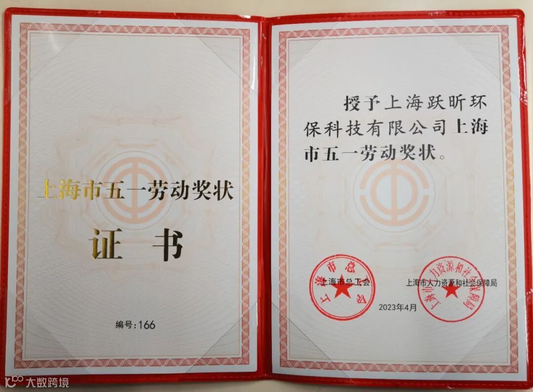 日前,上海跃昕环保科技有限公司被上海市总工会、上海市人力资源和社会保障局共同授予“上海市五一劳动奖状”荣誉称号。