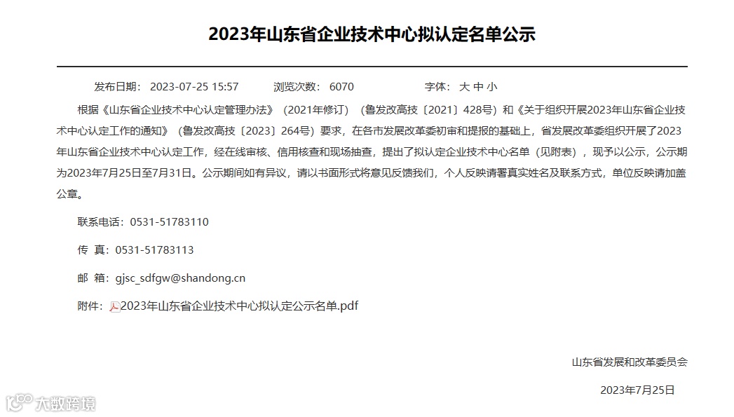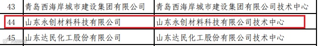 名单,山东永创材料科技有限公司企业技术中心成功入选,获评