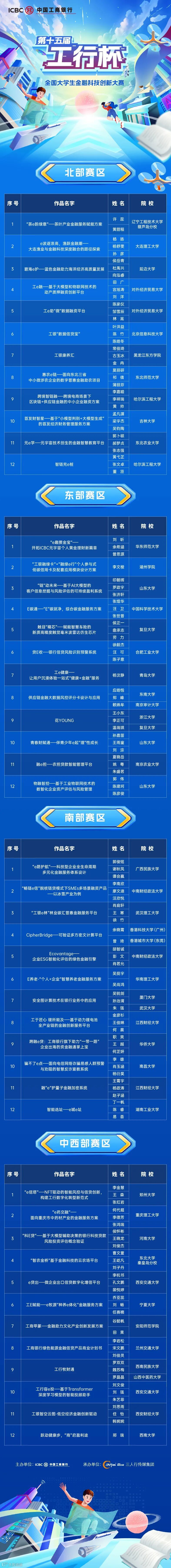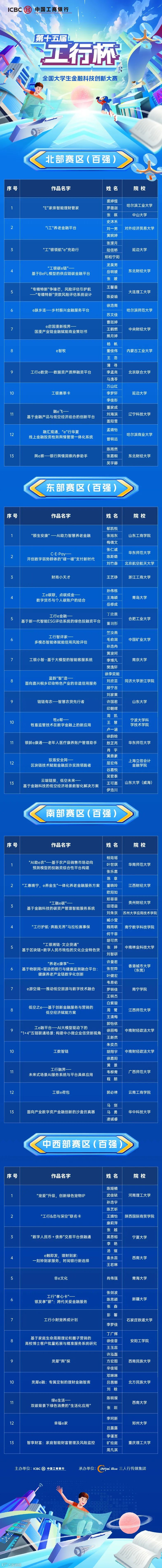 第十五届“工行杯”全国大学生金融科技创新大赛全国区域赛晋级名单