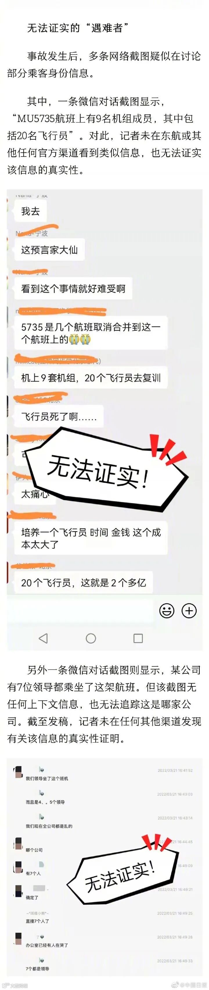 没登机的“幸运儿”有20多位?遇难者身份已确定?坠机前最后的视频曝光?……东航MU5735坠机后,这些消息都是假的!