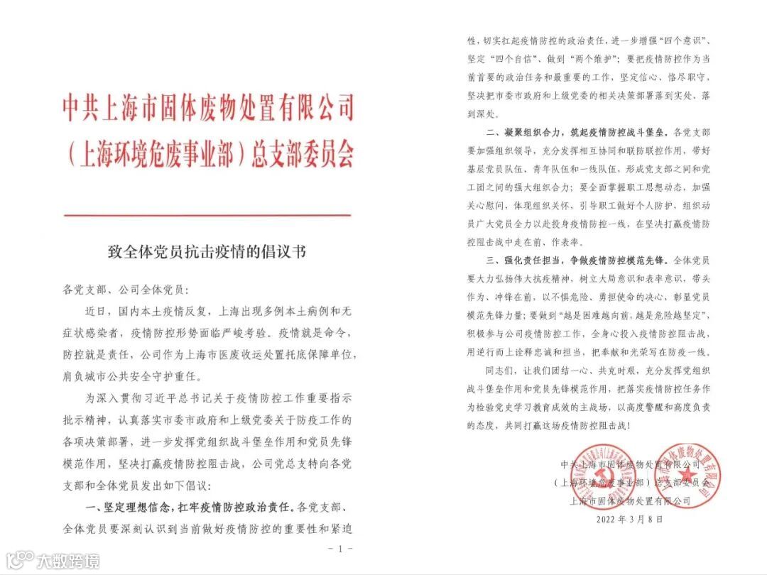 今年3月间,随着本土疫情的扩散蔓延,全市医废产生量呈爆发式增长,远超常规医废收运能力。当抗击疫情的号角再次吹响,固处公司党总支以党旗为战旗,发出抗疫倡议书,医废收运团队闻令即动,迅速集结。