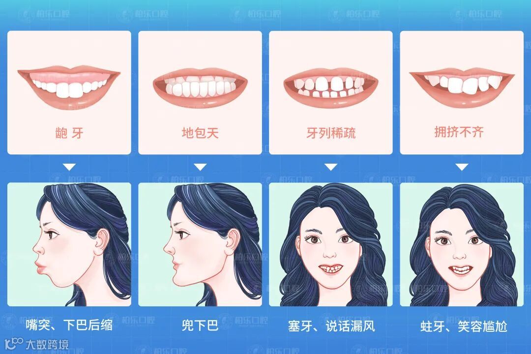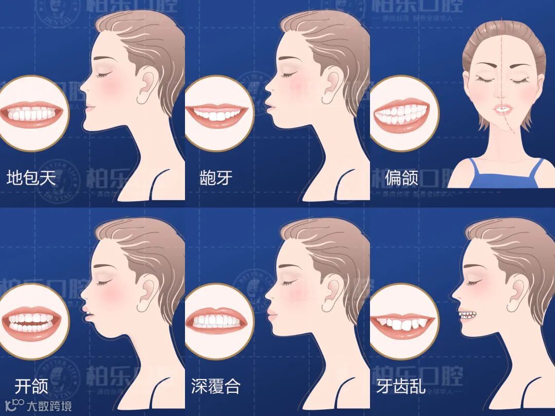 这是最直接能观察到的一个表现了,牙的唇向错位、颊向错位、舌向错位等,都有可能是错颌畸形。