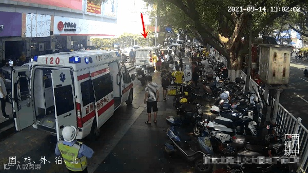 9月14日13时2分,在广西柳州市城中区解放北路光大银行门口,众人齐聚人行道上保持着同一个姿势,他们围在一辆白色面包车旁,将车辆向左抬起,与此同时消防人及医护人员努力将一名被压在车底的男子向外抬出救援。