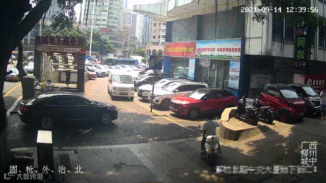 时间倒回至12时39分,柳州市解放北路的人行道上一辆号牌为桂BDE3***的白色面包车在起步时突然向前冲出,在撞倒号牌为宜州52***的电动车后继续向前冲,径直与号牌为桂B96***的白色小客车碰撞,导致电动车被两辆车夹击,造成电动车驾驶人被压进车底受伤,三车不同程度损坏的交通事故。