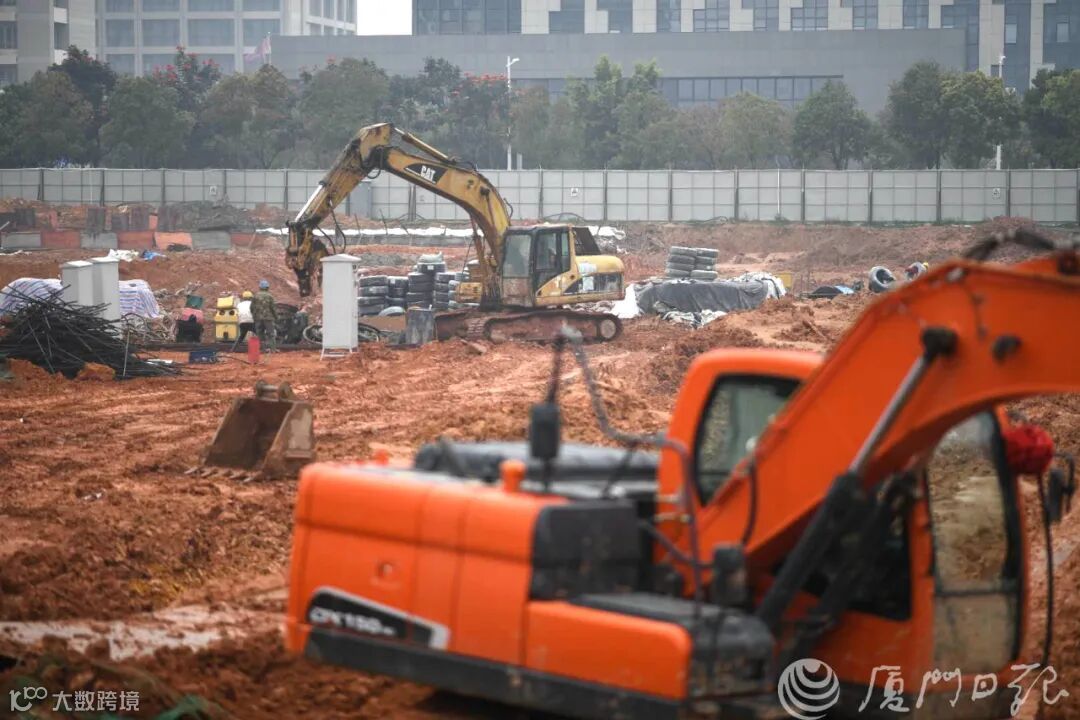 厦门地铁6号线林埭西站一片热火朝天的施工场面。