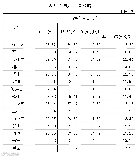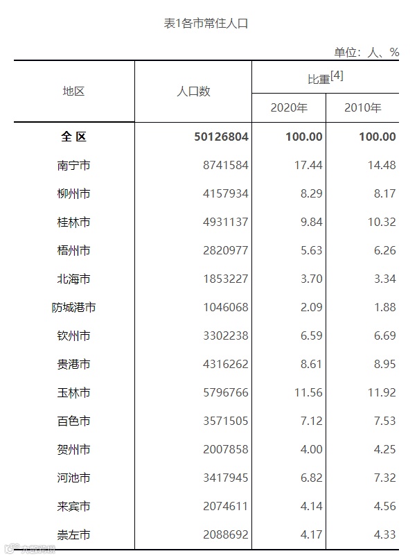广西第七次人口普查主要数据公报
