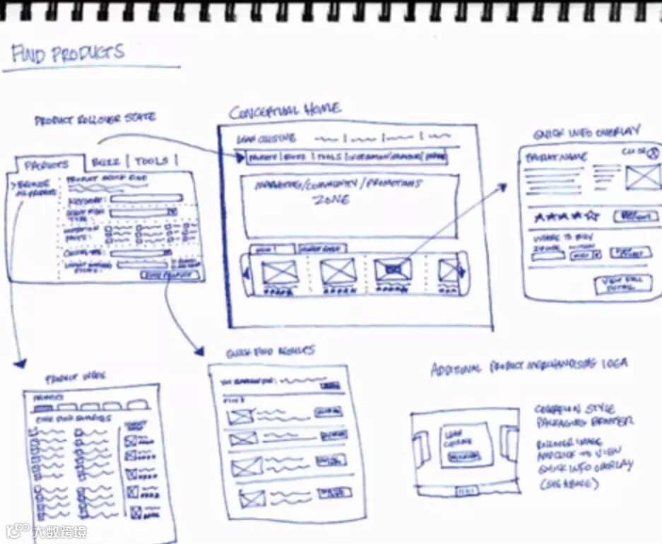 如果产品包括几个简单的页面,用户需要在它们之间做不同决策的时候,使用产品流程图很有效。并且,拿这种图很方便跟程序员沟通。