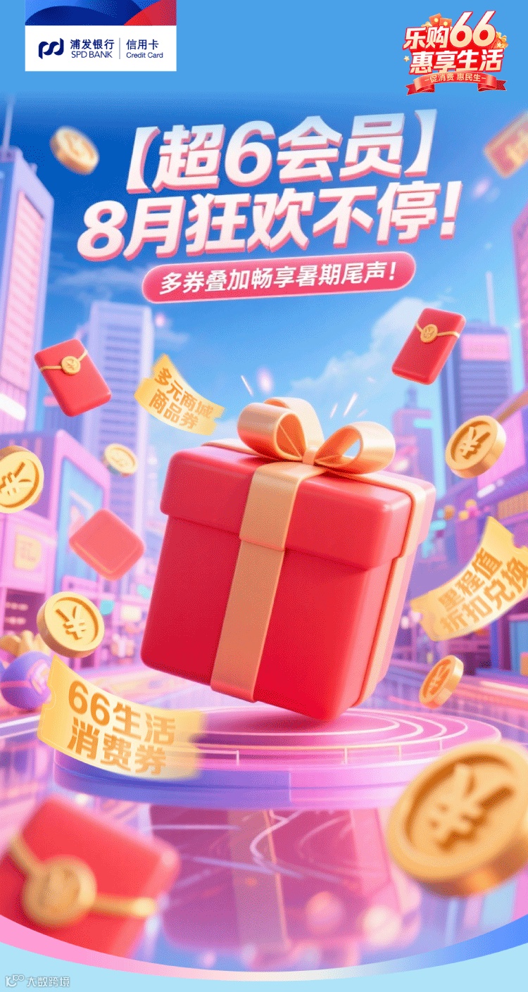 超6会员超值福利来了!最高6666元刷卡金红包、6666元生日特权、166元消费券券包、1折里程兑换!