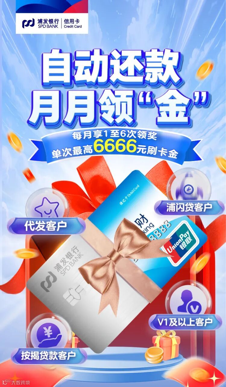 自动还款,月月领“金”,最高6666元刷卡金不容错过!