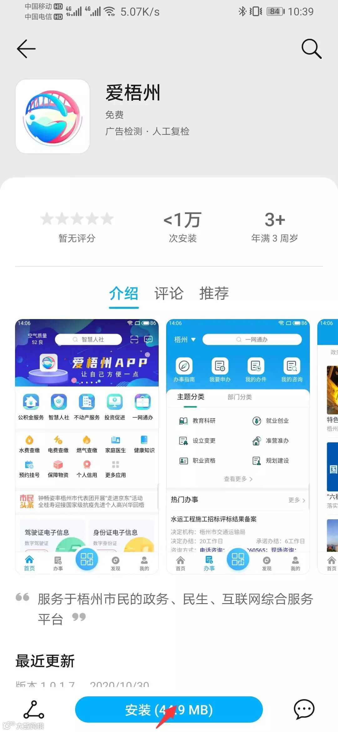 点击文末“阅读原文”打开“爱梧州APP”下载链接,下载安装“爱梧州APP”。