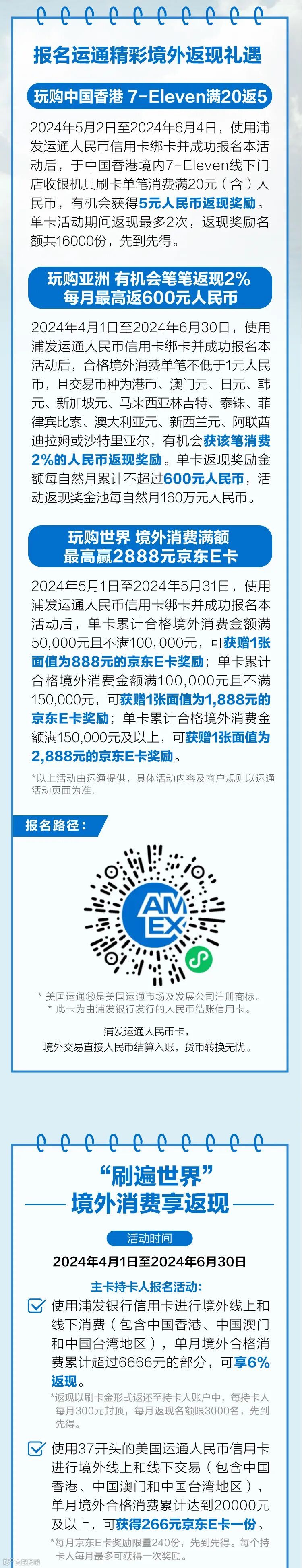 错峰出境游,刷浦发运通人民币卡,享受返现奖励!