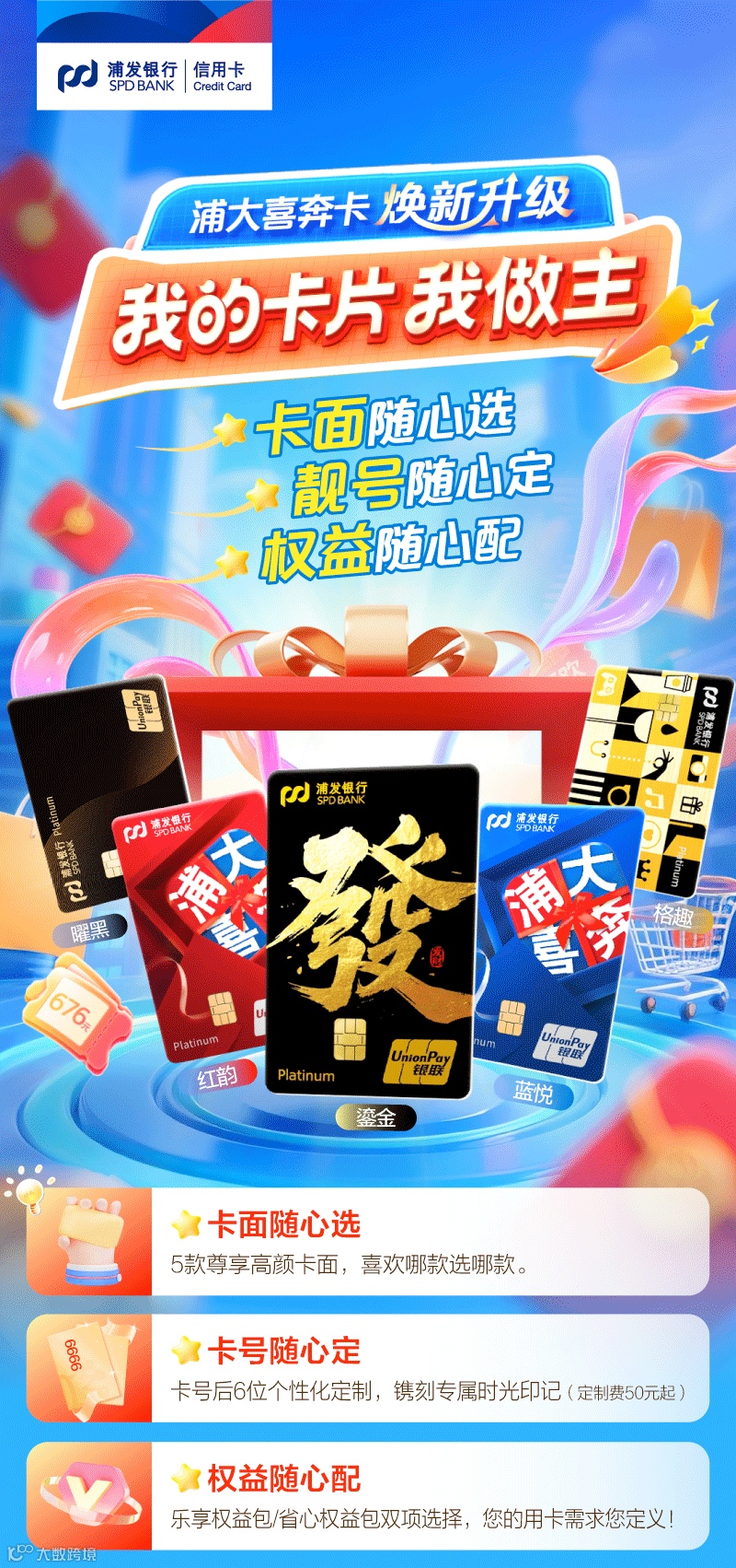 大牌餐饮月月省100元!卡面随心选、卡号随心定、权益随心配!浦发喜奔生态卡焕新升级!