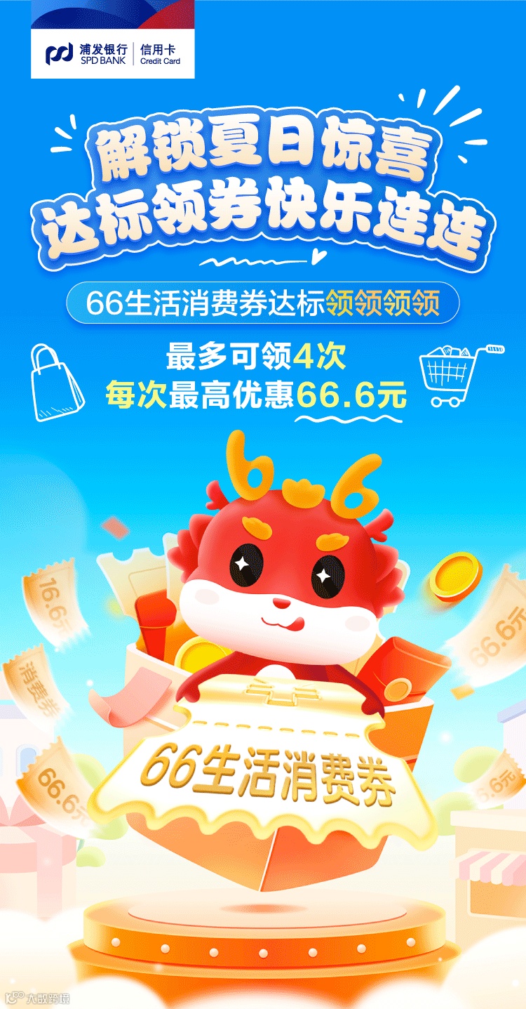 66消费券达标优惠来了!最多可领4次,每次最高优惠66.6元!下载浦大喜奔APP领取!