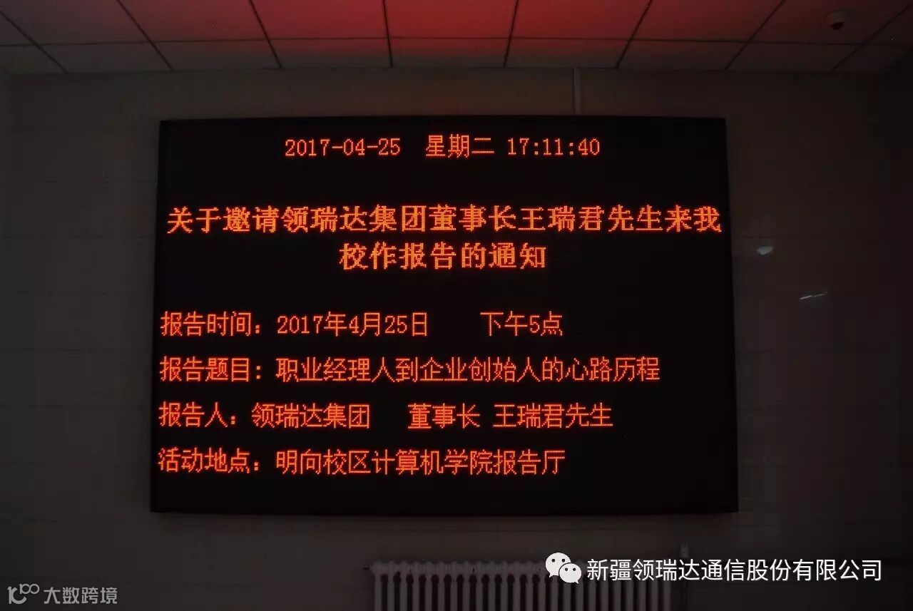 4月25日下午5点,领瑞达集团董事长王瑞君先生(公司创始人,创办上市公司新疆领瑞达通信股份有限公司,股票代码:870566)作为太原理工大学杰出校友,受邀出席了太原理工大学115周年校庆并在明向校区信息学院报告厅作“职业经理人到企业创始人的心路历程”的专题报告。太原理工大学信息学院领导李灯熬、彭彦彬先生一同出席了此次报告会。