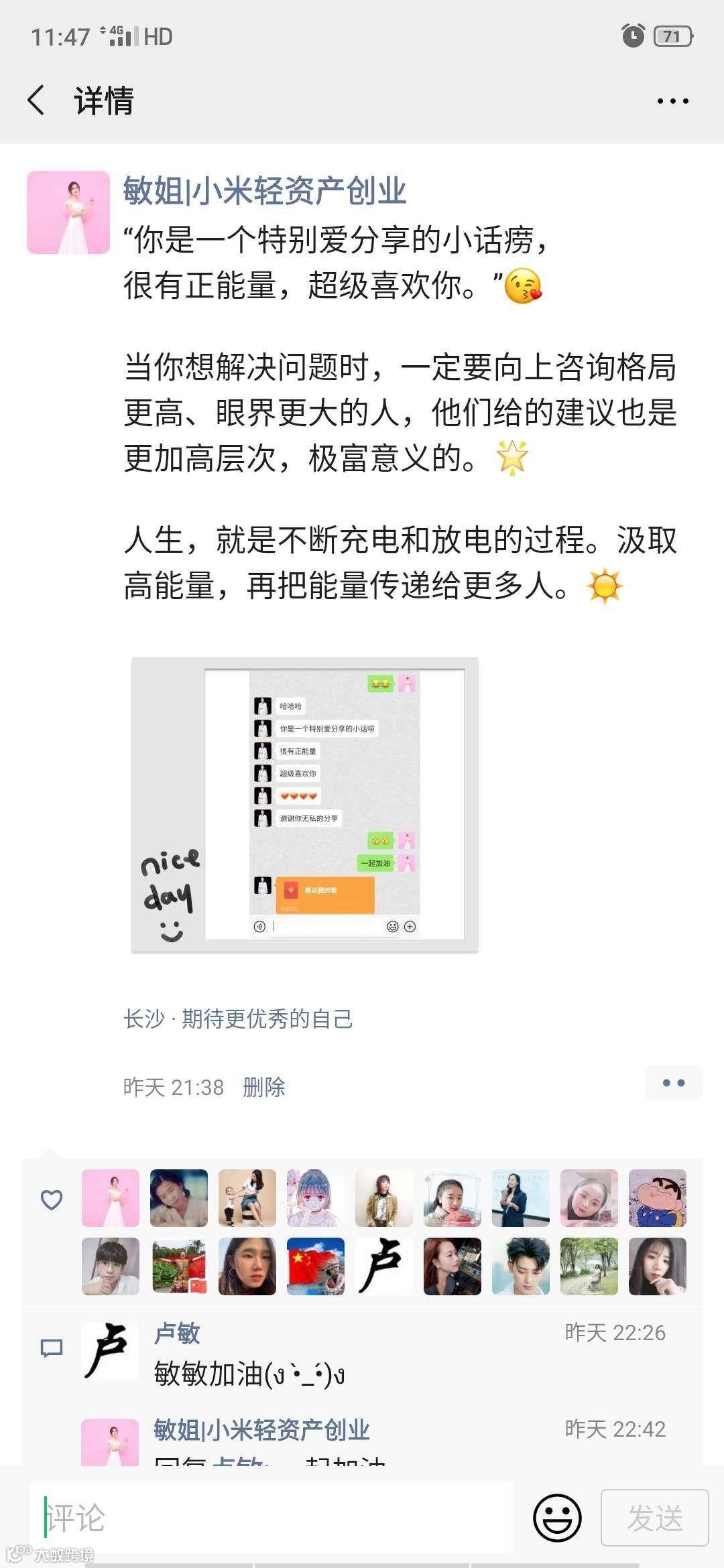 在群人数停留在30人,一直没有突破的时候,诗敏不断去发第二遍,第三遍私聊,怀着真心,希望更多女孩加入,可以得到帮助。