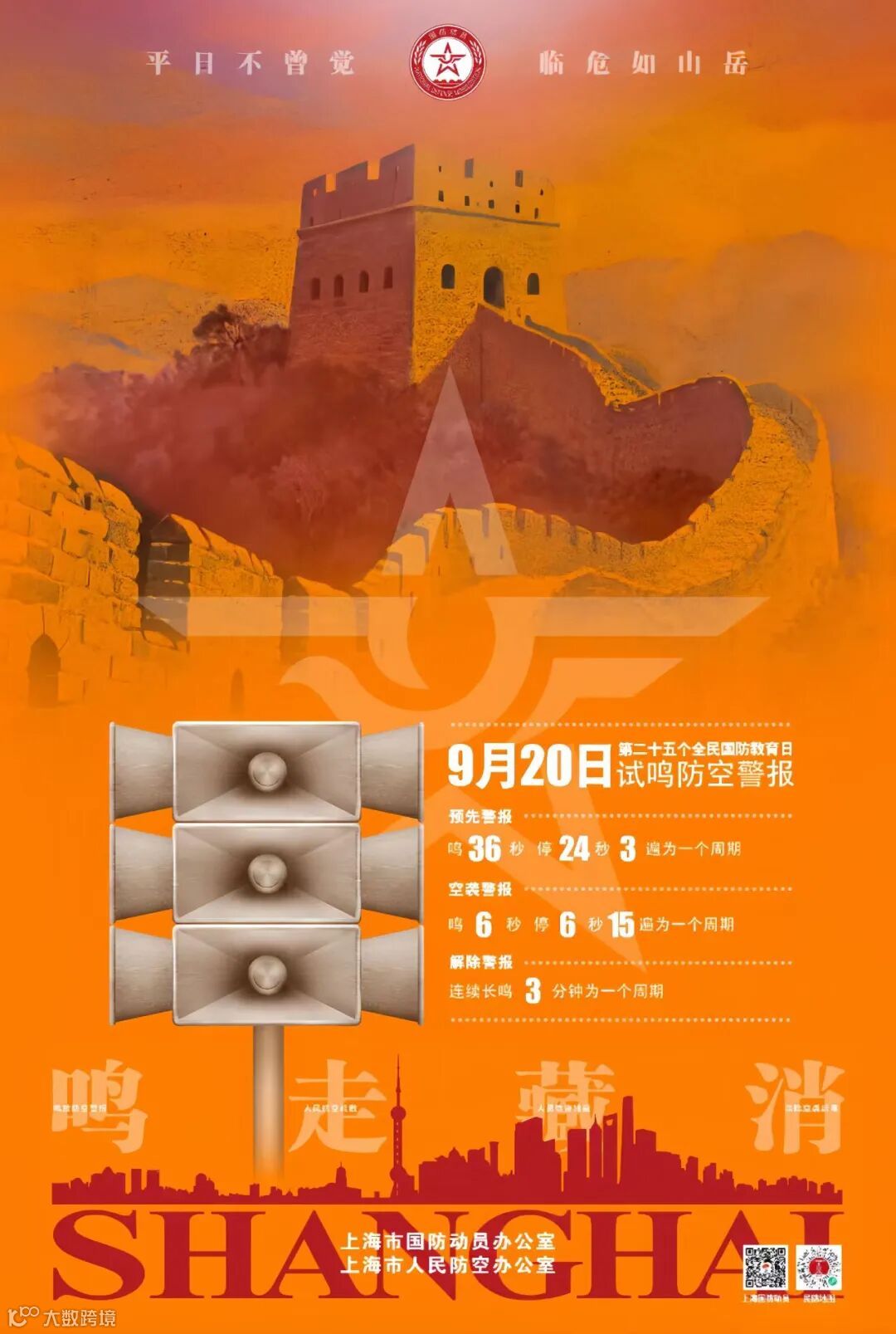 上海市每年在全民国防教育日进行防空警报试鸣,今年是第18个年头,安排详见《上海市人民政府关于进行防空警报试鸣的通告》。