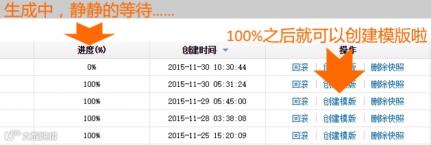 生成快照是由阿里云服务完成的,有时由于负载情况可能会比较久,请耐心哟。