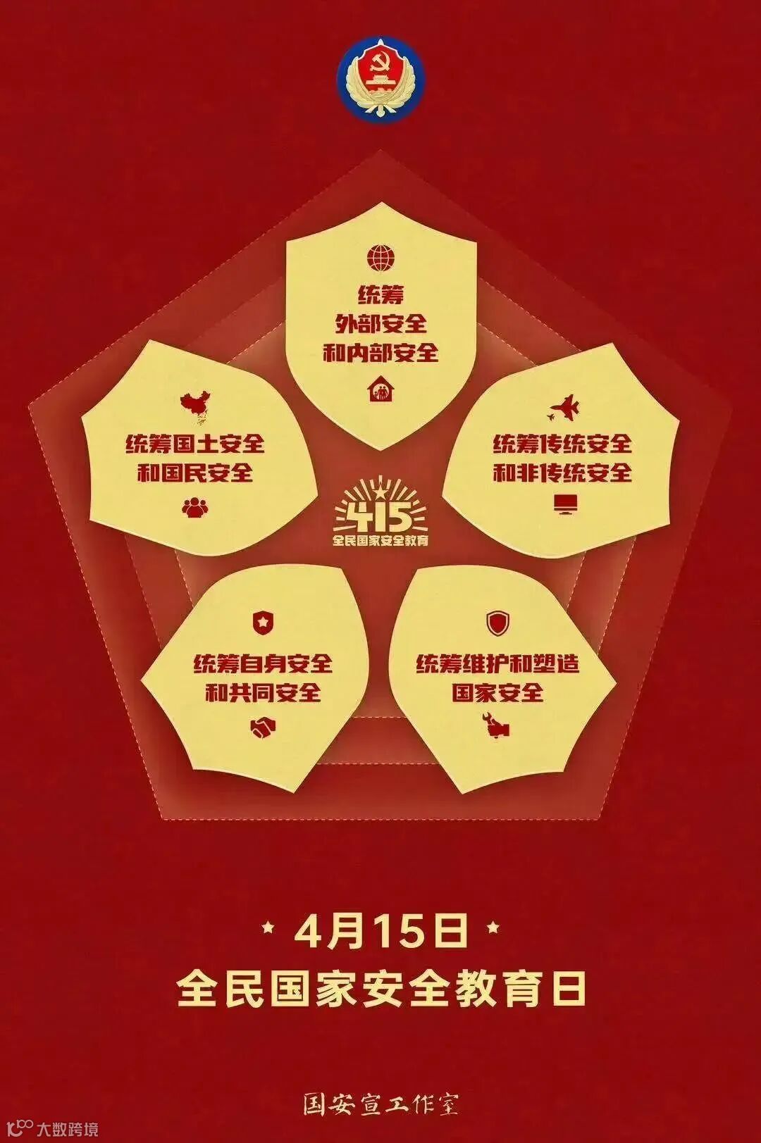 2023年4月15日是第八个全民国家安全教育日,主题为“贯彻总体国家安全观,增强全民国家安全意识和素养,夯实以新安全格局保障发展格局的社会基础”。