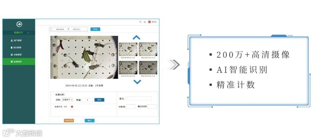 系统内置200万高清摄像,利用AI智能识别技术,系统可对虫仓中的目标天牛智能识别、精准计数,有效解决了传统光电感应记数中的误判和漏判,让诱捕、监测数据变得更加精准。