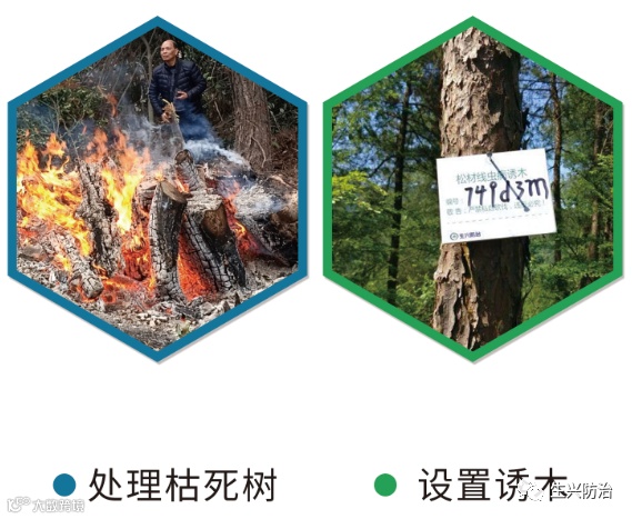 生兴防治在2018-2021年福建省洛江区马甲镇三年半松材线虫病综合防控项目中,聚焦疫情监测调查、疫点疫木除治、疫情传播阻击、健康松林保护等关键环节,因地制宜科学防控,综合采用诱木引诱、诱捕器引诱、天牛成虫羽化期喷药、天敌防治以及疫木除治等措施,2019年松枯死木下降率达到70%,防控效果明显,有效地抑制松材线虫病疫情的发生。