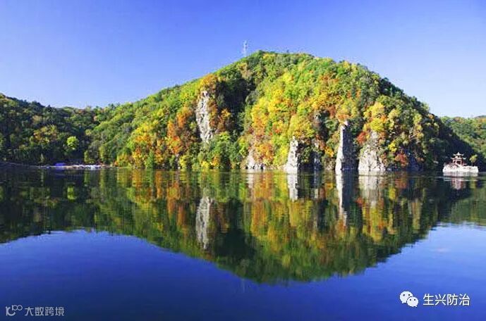 三角龙湾因水面呈三角形而得名,湖心有一小岛如天外飞石孤立水中,白云碧水间,映霞壁、三剑峰、白龙泉等生态奇观将三角龙湾装点得如诗如画,景致据诸龙湾之首。