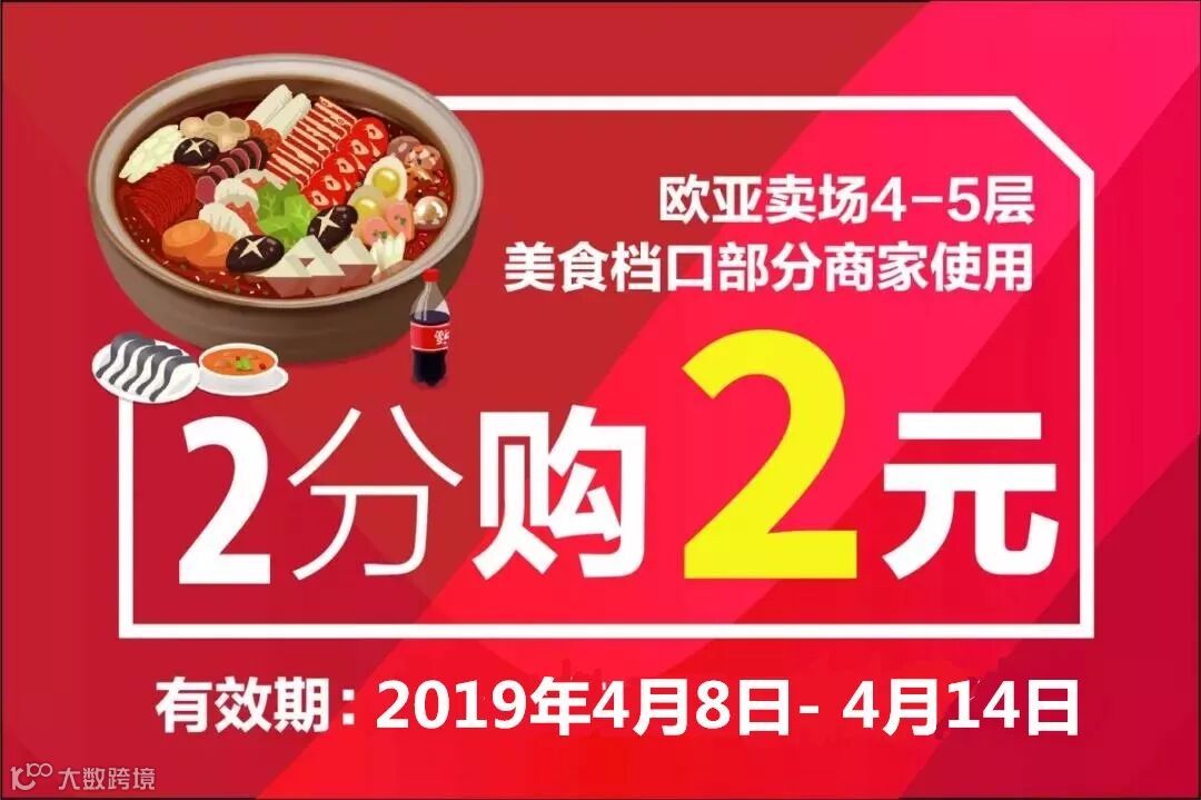 (活动详情请关注欧亚汇APP“0.02元抢购欧亚卖场4-5层2元美食优惠券”活动页面)