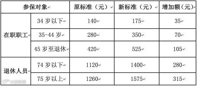 为减轻参保职工自负医疗费负担,本市将适当提高个人账户计入标准。在职职工中,34岁以下的医保个人账户计入标准由140元提高到175元;35-44岁的医保个人账户计入标准由280元提高到350元;45岁至退休的医保个人账户计入标准由420元提高到525元。在退休人员中,74岁以下的医保个人账户计入标准由1120元提高到1400元;75岁以上的医保个人账户计入标准由1260元提高到1575元。
