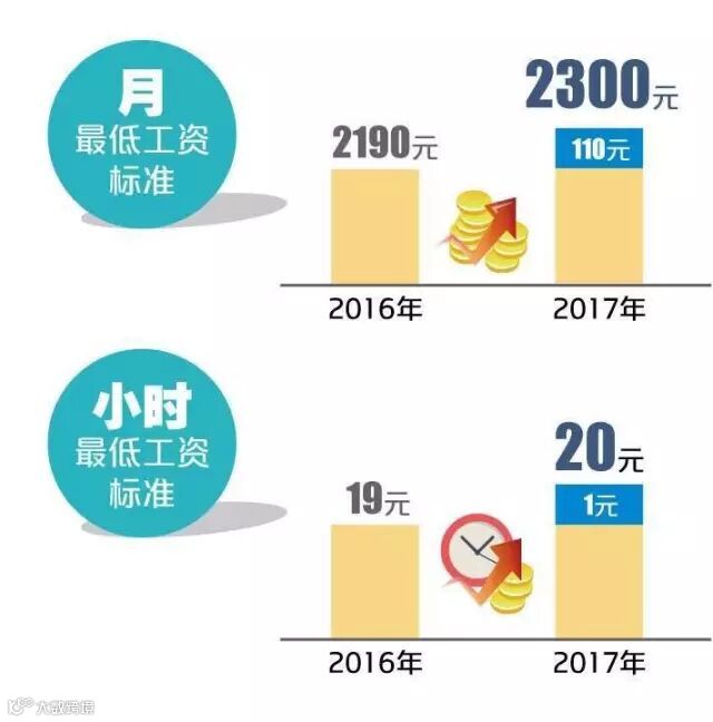 从4月1日起,本市月最低工资标准从2190元调整到2300元,增加110元;小时最低工资标准从19元调整到20元。