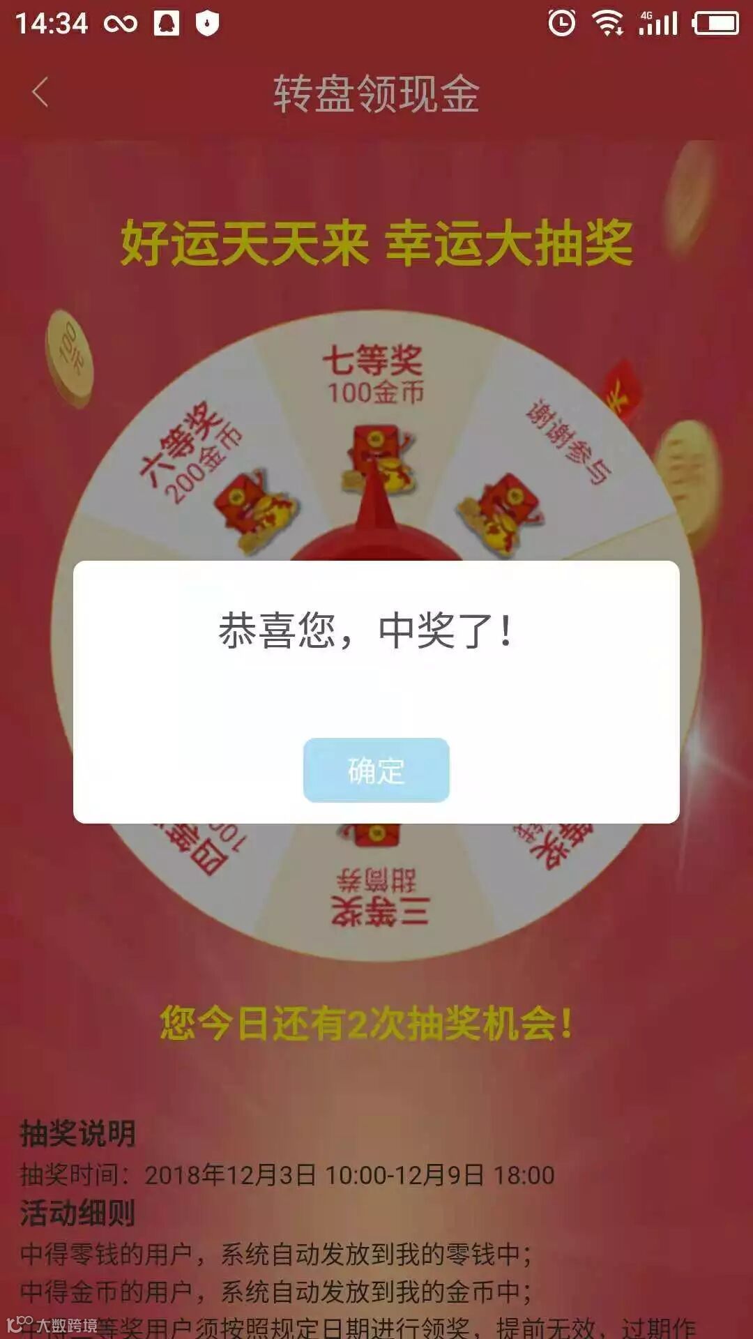 2、用户每天可进行3次转盘领现金活动,奖品每周更新一次;