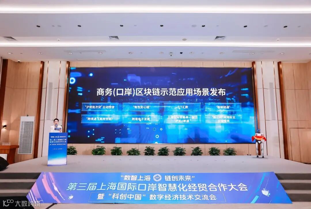 近年来,区块链技术成为提升口岸经贸效率、优化跨境业务流程的关键力量。为推动构建“区块链 + 口岸经贸”的创新生态体系,凝聚行业力量,助力全国口岸智慧化升级,大会发布了电子发票、T/T汇款、沪贸批次贷、跨境通、新三样、智贸链通、沪关e单通、有色安心链共8个具有代表性的区块链在商务及口岸的创新应用场景,为行业提供了实践标杆。