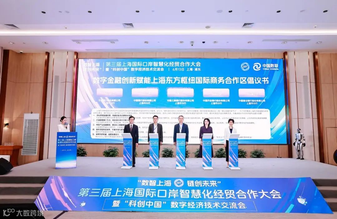上海东方枢纽国际商务合作区是国务院批复的高度便利的国际商务交流载体,定位为“便利国际商务交流的新平台、服务资源要素汇聚的新载体和推动长三角一体化发展的新节点”。为了共同推进上海东方枢纽国际商务合作区建设,由中国工商银行股份有限公司上海市分行副行长糜良,中国农业银行股份有限公司上海市分行副行长王嵘,中国银行股份有限公司上海市分行副行长王孟颖,中国建设银行股份有限公司上海市分行副行长董子泳,交通银行股份有限公司上海市分行副行长刘钢华5大银行代表共同签署《数字金融创新赋能上海东方枢纽国际商务合作区倡议》。5家倡议方联合呼吁各银行同仁共同提升数字金融服务能级,支持上海东方枢纽商务合作区更好联通国内国际两个市场,更好利用国内国际两种资源,为推进高水平对外开放作出更大贡献。